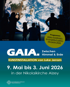 Besuchen Sie die Ausstellung “GAIA. Zwischen Himmel und Erde” in der Nikolaikirche Alzey. Weitere Informationen finden Sie hier: